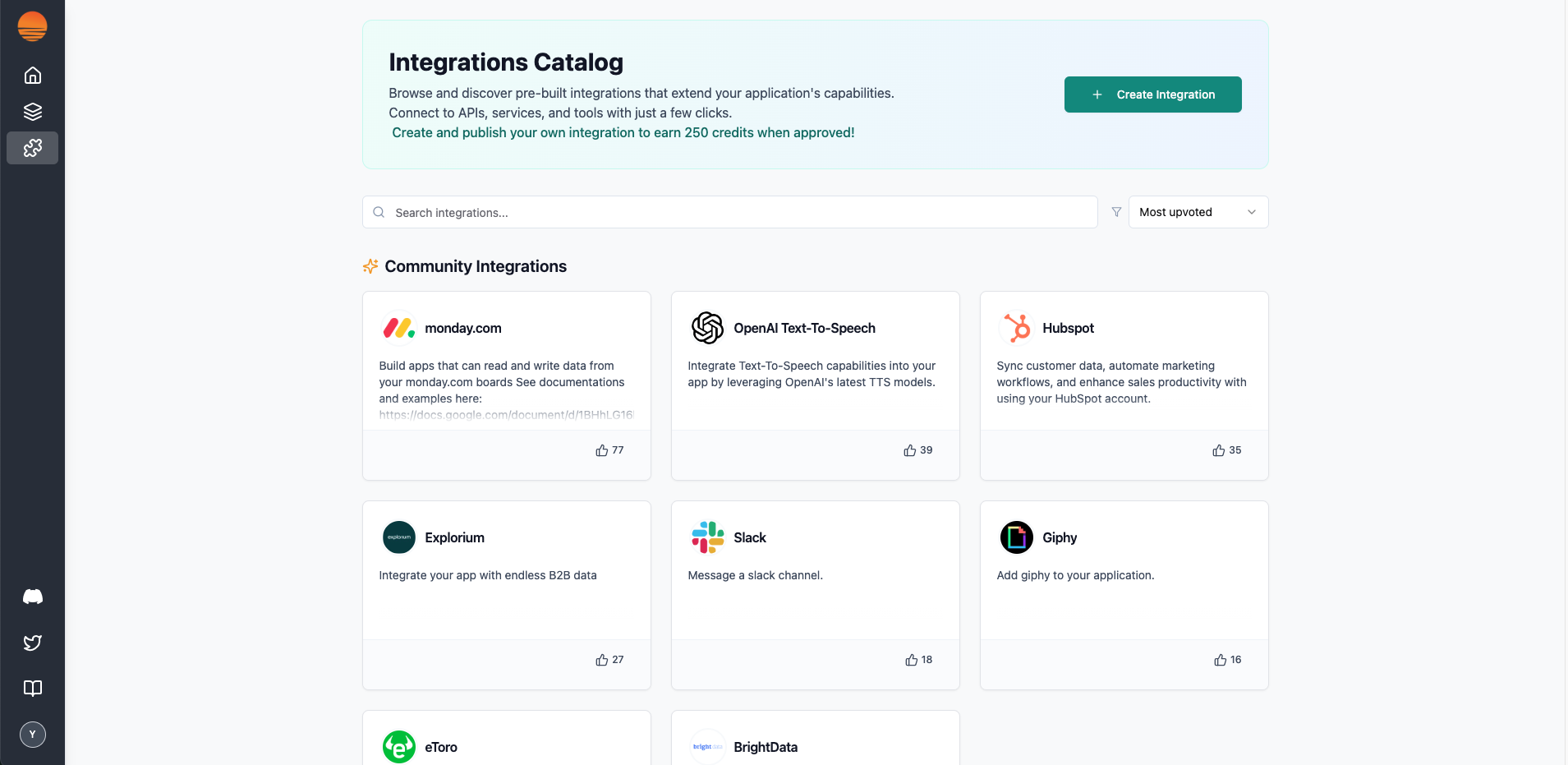 Click the puzzle-piece icon in the left nav to open Integrations. Locate Explorium in the Community Integrations list (you can use the search box).